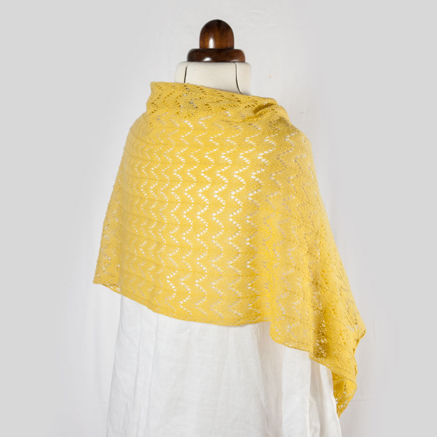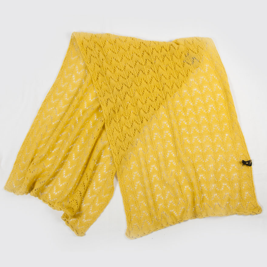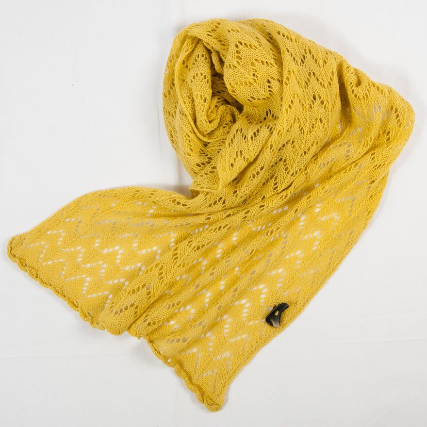 Tørklædet har en påsyet knap, der giver flere måder at bære halstørklædet på.