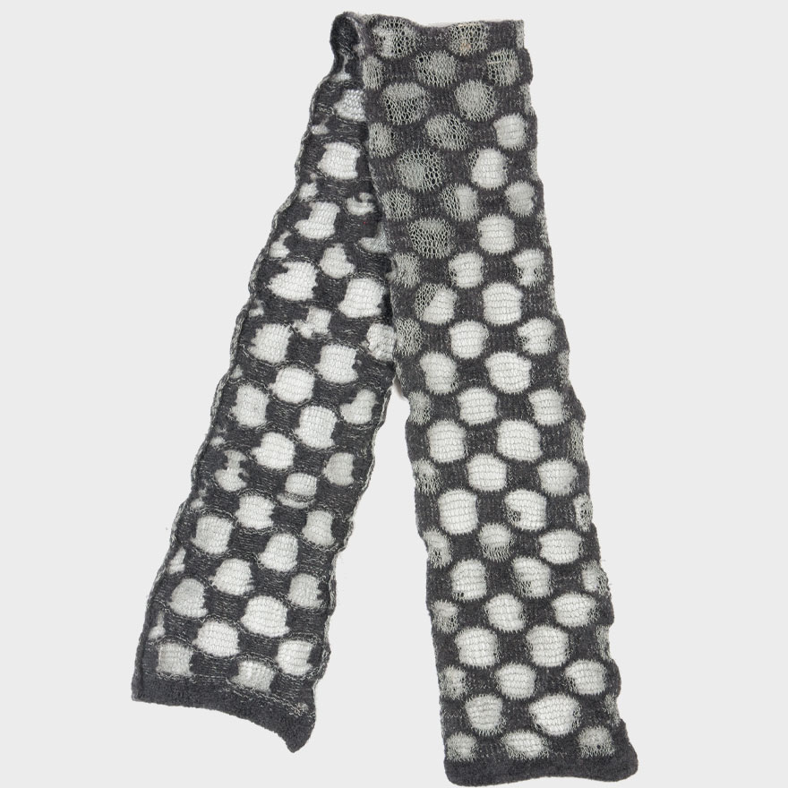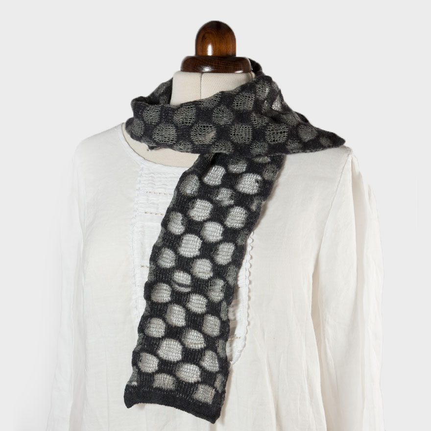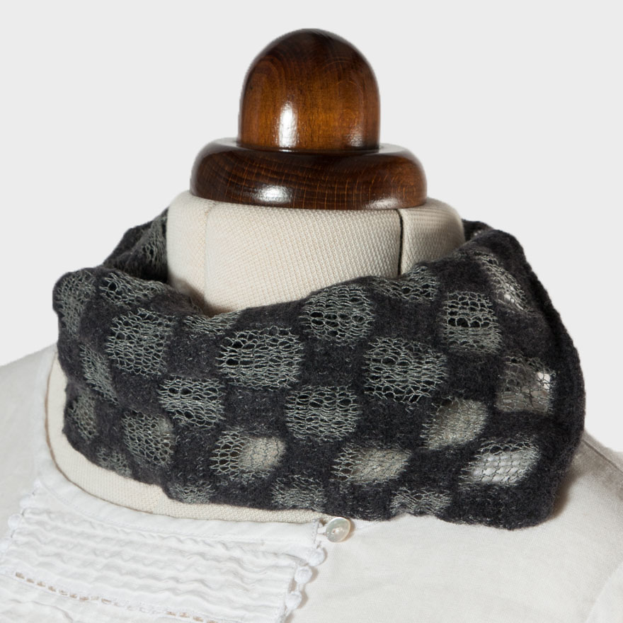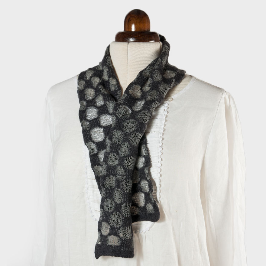 Tørklædet er strikke med en sjov teknik, hvor man strikker tern med skiftevis uld- og japansk hørgarn. Efter en let valkning, bliver uldfibrene klippet op så ternene fremstår tydeligere. Efter endnu en valkning, er tørklædet klar til brug.